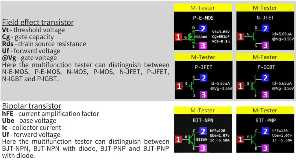 Кроме того, он может автоматически распознавать компоненты.То есть он может различать разные типы транзисторов, такие как транзисторы NPN или PNP.