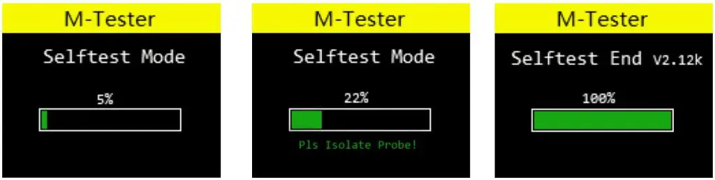 Теперь нажмите Старт, чтобы выполнить самотестирование. Устройство спросит вас прибл. 22%, чтобы удалить компонент, чтобы можно было успешно завершить самотестирование. Теперь вы можете приступить к измерению ваших компонентов. Вы запускаете процесс измерения с помощью кнопки Start.